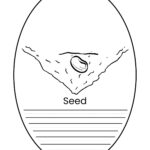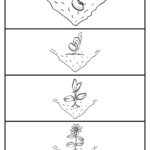 • Kolorowanka z paskami czterech etapów (seed, sprout, plant, flower). Najpierw dziecko koloruje, potem wycina paski poziome i układa w kolejności na ławce lub przykleja na osobnej kartce.