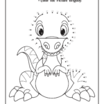 Do 41 punktów numerowanych — dziecko łączy po kolei, odkrywa dinozaura, potem koloruje. „Connect The Dots With Numbers + Color The Picture Brightly" (angielska instrukcja). Uczy liczenia + motoryki + cierpliwości.