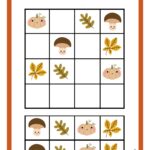 Jesienne karty pracy z tego zestawu układają się w rytm od łatwych zadań liczenia po logiczne sudoku i precyzyjne wycinanki.