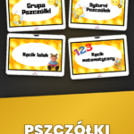 Pszczółki to wdzięczny motyw. Żółty plus czarny czyta się z drugiego końca sali, plaster miodu daje regularną geometryczną fakturę, a sama postać pszczoły kojarzy się z pracowitością i grupą, więc dobrze pasuje do grup wczesnoprzedszkolnych. Jeśli prowadzisz grupę o nazwie Pszczółki albo masz w sali tematykę „przyjaciele z łąki", ten zestaw wpisuje się w to bez kombinowania. Dodatkowo pszczoły to wdzięczny temat na zajęcia o przyrodzie, więc dekoracja staje się punktem wyjścia do rozmów o zapylaniu, ulu, miodzie czy współpracy w grupie.