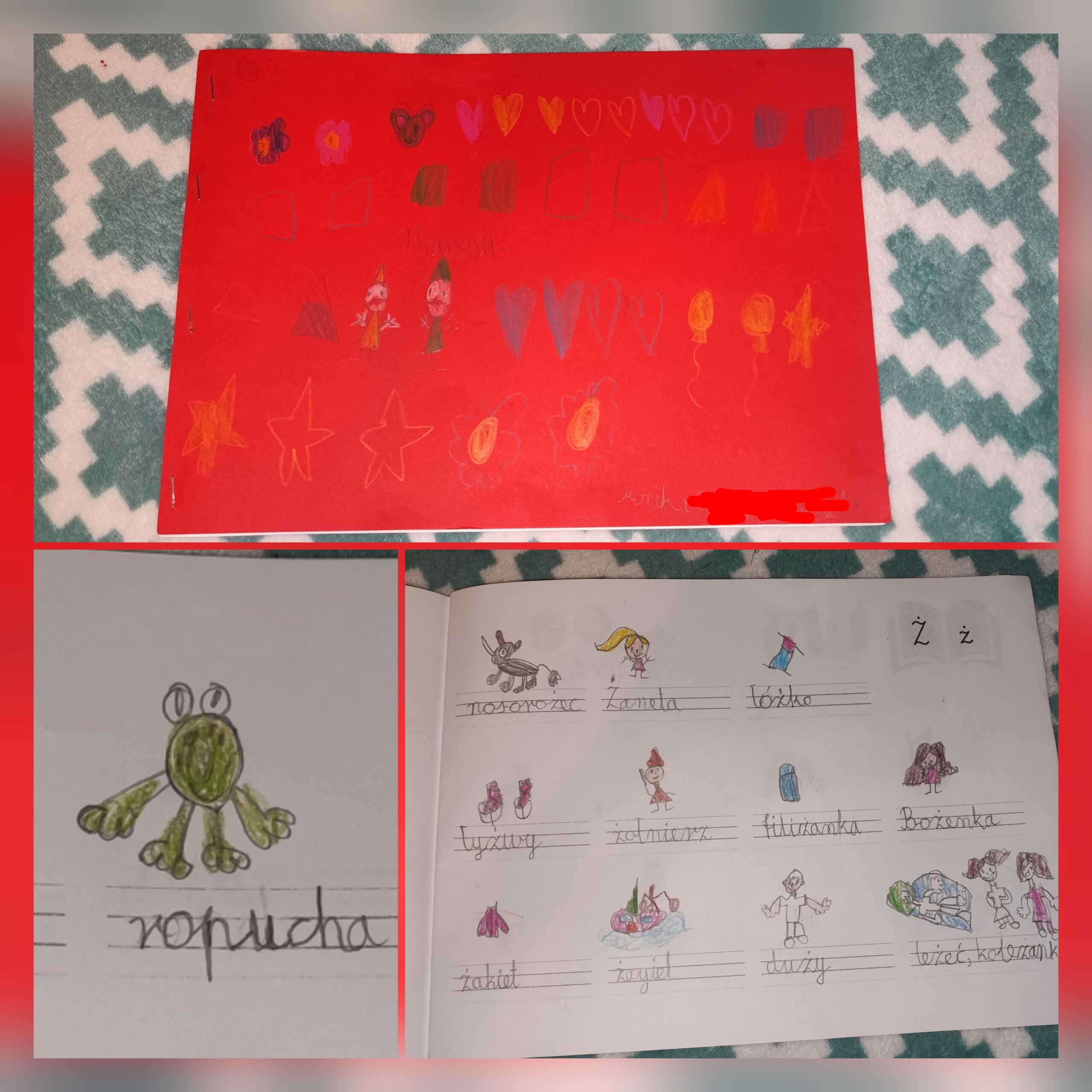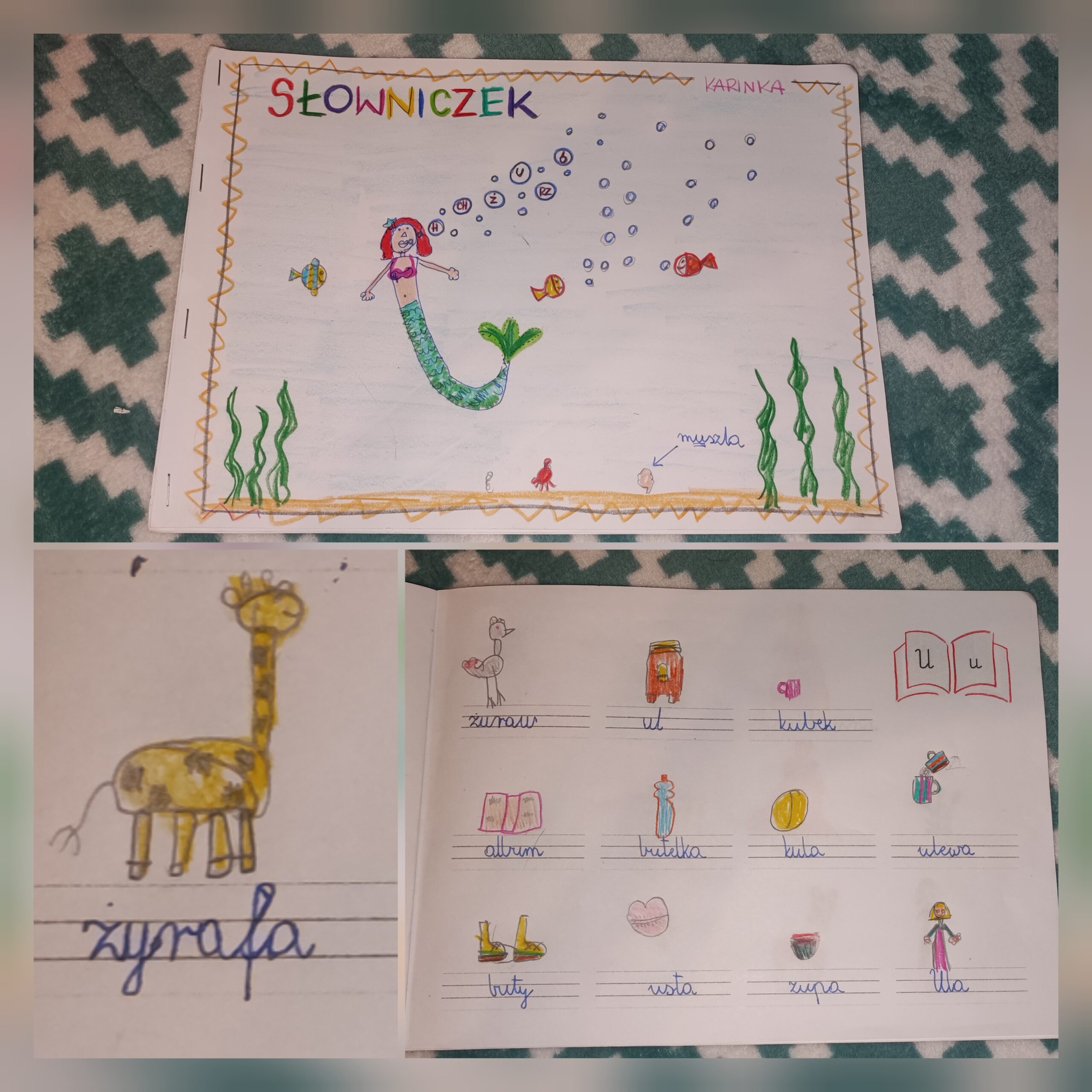 Przez ostatni miesiąc moje Skarby pracowały nad zapisywaniem wyrazów, szczególnie tych trudniejszych zawierających ó/u, h/ch, ż/rz. Ich wysiłek i zaangażowanie zaowocowały stworzeniem tego niesamowitego dzieła.